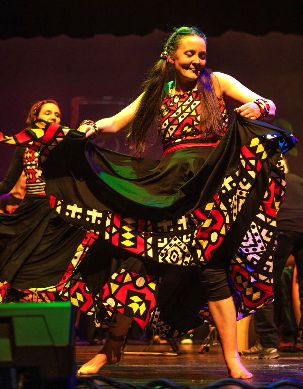 Cathryn McShane-Kouyaté has been an active member of our Samba Galêz dance team since 2009 and took over as permanent dance lead in 2021. Cathryn has over 26 years experience of community arts (especially carnival) as a dancer, maker, and parade coordinator (including Carnifal y Môr to open the National Eisteddfod in Cardiff Bay in 2018 and Butetown Carnival), but her passion is for joyful high energy dance of all genres.